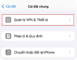 Bước 3: Chọn “Quản lý VPN & Thiết bị”
